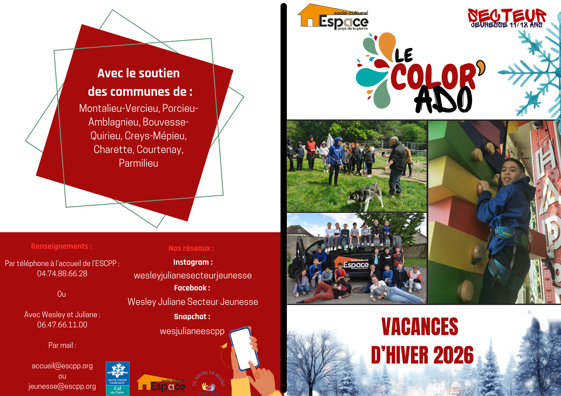 Accueil / Tourisme, culture et activités / ACTIVITÉS / ESCPP / SECTEUR JEUNESSE 11/18 ANS 'Le Color'Ado" 2026 Vacances d'hiver